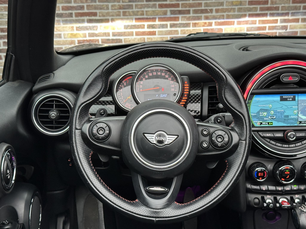 Wat een gemak, die achteruitrijcamera. Alles in beeld zonder capriolen. U kunt uw handen aan het stuur houden en uw ogen op de weg. Want het audio-installatiesysteem, met DAB-ontvangst, en het full map navigatiesysteem bedient u vanaf het stuurwiel. Automatische airconditioning regelt volautomatisch de temperatuur. U kiest de gewenste temperatuur en het systeem doet de rest. Het drukke verkeer eist onderweg al uw aandacht op. Daarom is het goed dat deze Mini is voorzien van diverse systemen die u assisteren tijdens de rit. Een automatisch inschakelbare verlichting neemt het waar als het donker wordt of gaat schemeren, en schakelt dan automatisch de verlichting in. Op dezelfde manier "ziet" de regensensor de eerste spatjes regen en schakelt dan de ruitenwissers in, en als het harder gaat regenen zet hij de ruitenwissers ook in een snellere stand. Cruise control houdt automatisch de ingestelde snelheid vast. Het is een ideaal hulpmiddel om lange ritten comfortabeler te maken. Met sportstuurwiel, keyless entry en boordcomputer is deze auto helemaal compleet.