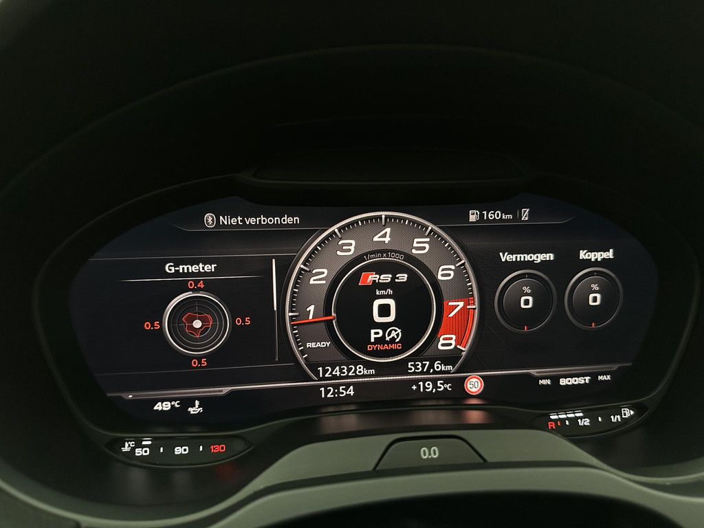Zoals u mag verwachten van deze Audi RS3 Sportback is hij uitgerust met een reeks aan actieve veiligheidssystemen. Een camera houdt de juiste koers binnen de rijstrook in de gaten en het Lane-keeping systeem corrigeert bij afwijkingen. Ook helpen het frontale botsbescherming en bandenspanningcontrolesysteem, uw rit tot een veilige rit te maken.