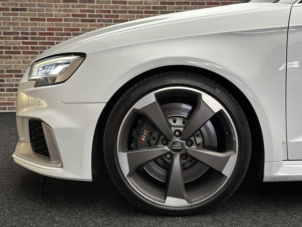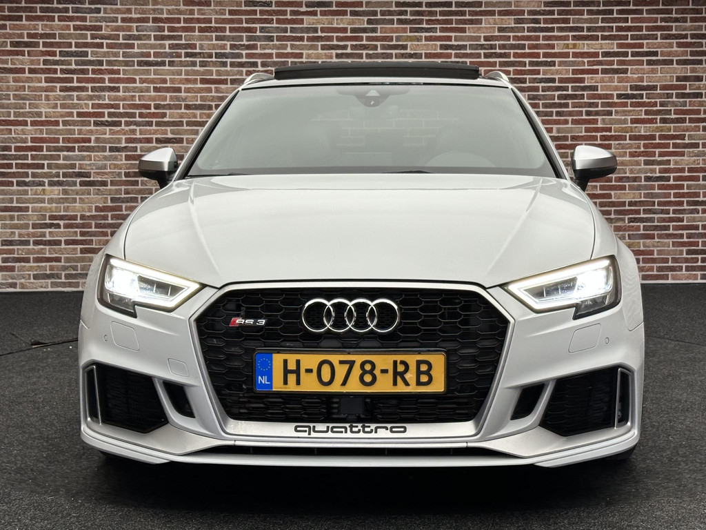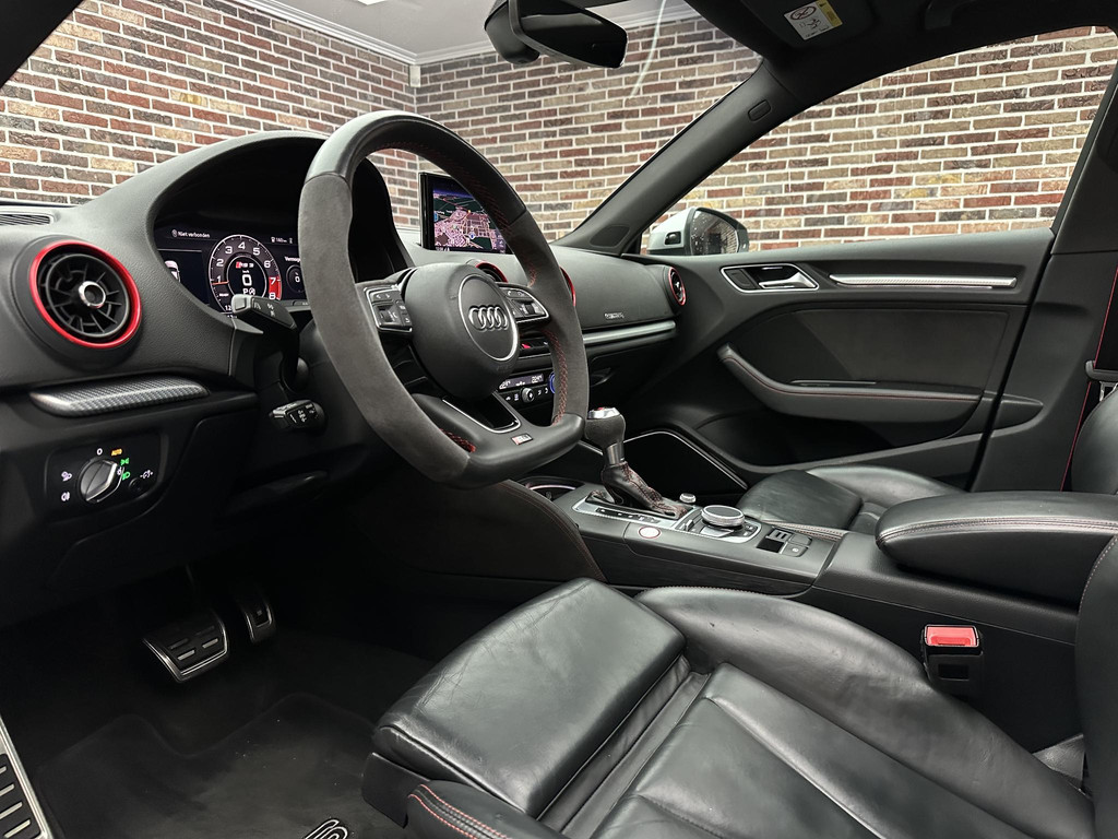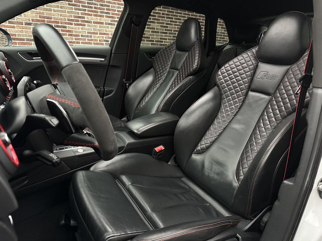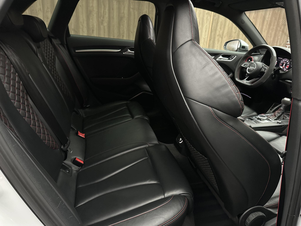 In het moderne verkeer hebt u achter het stuur van de Audi RS3 Sportback altijd de controle. Deze auto komt uit 2018. De vijfcilinder benzinemotor in combinatie met de automatische transmissie maken het rijden met deze Audi tot een waar feest. Iedereen kan het beamen: een lederen interieur is levend en luxe. Om van comfort nog maar te zwijgen. En dat komt allemaal nog beter tot z'n recht dankzij het elektrisch bediende glazen panorama dak. Tijdens koude winterdagen verjaagt uw stoelverwarming de kou en maakt het rijden heerlijk comfortabel. Dankzij de matrix LED-verlichting geven de koplampen ook in het donker daglicht. Bij de uitrusting van deze auto horen onder meer 19 inch lichtmetalen velgen, sportonderstel, adaptief dempingsysteem, warmtewerend glas, in delen neerklapbare achterbank en verstelbare lendensteunen.