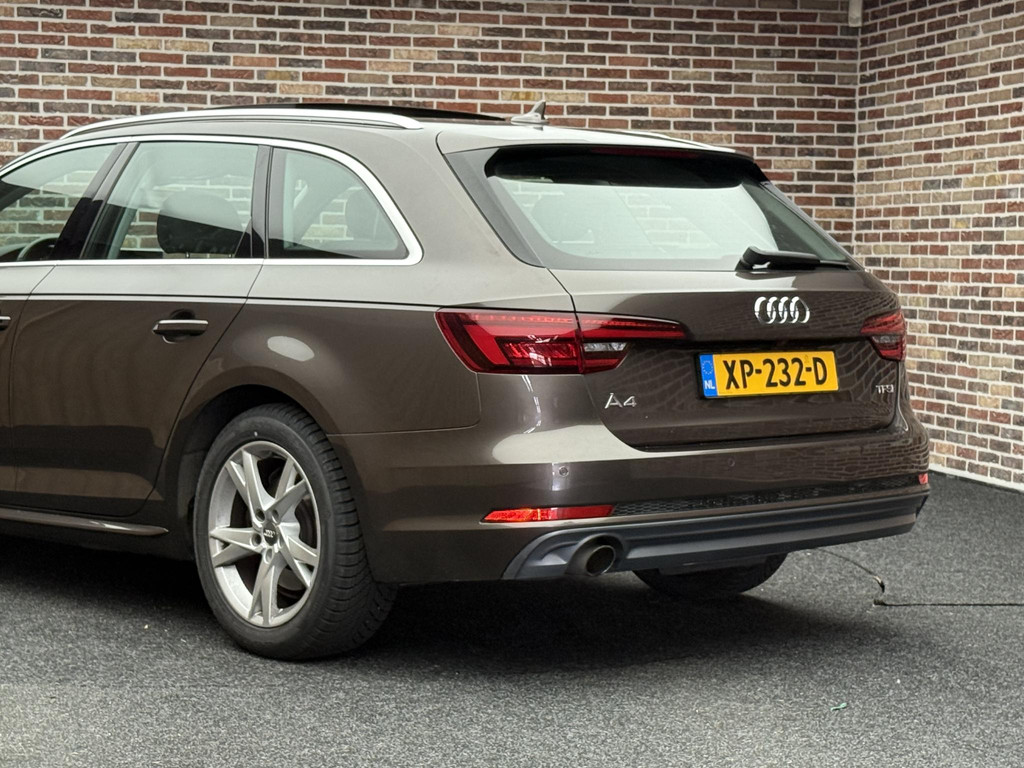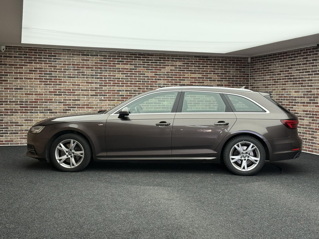 Een Duitse auto. Altijd grondig in techniek, prestaties en klasse. De S-Line styling van deze auto is zowel smaakmakend als spraakmakend. Met zijn benzinemotor en automatische transmissie is dit een prima auto voor nog vele kilometers. Het elektrisch bediende glazen panorama dak laat een weelde van licht naar binnen vallen. En aan de achterzijde opent u het elektrisch bedienbare achterklep met één simpele klik. Een weldaad voor uw rug en die van uw bijrijder: deze Audi A4 Avant heeft verwarmbare voorstoelen met massagefunctie. Laat die bochten maar komen! In de sportstoelen zitten u en uw bijrijder altijd goed! Bij de zeer complete uitrusting van deze auto behoren ook 18 inch lichtmetalen velgen, LED koplampen, sportonderstel, halflederen bekleding, warmtewerend glas en dakspoiler.