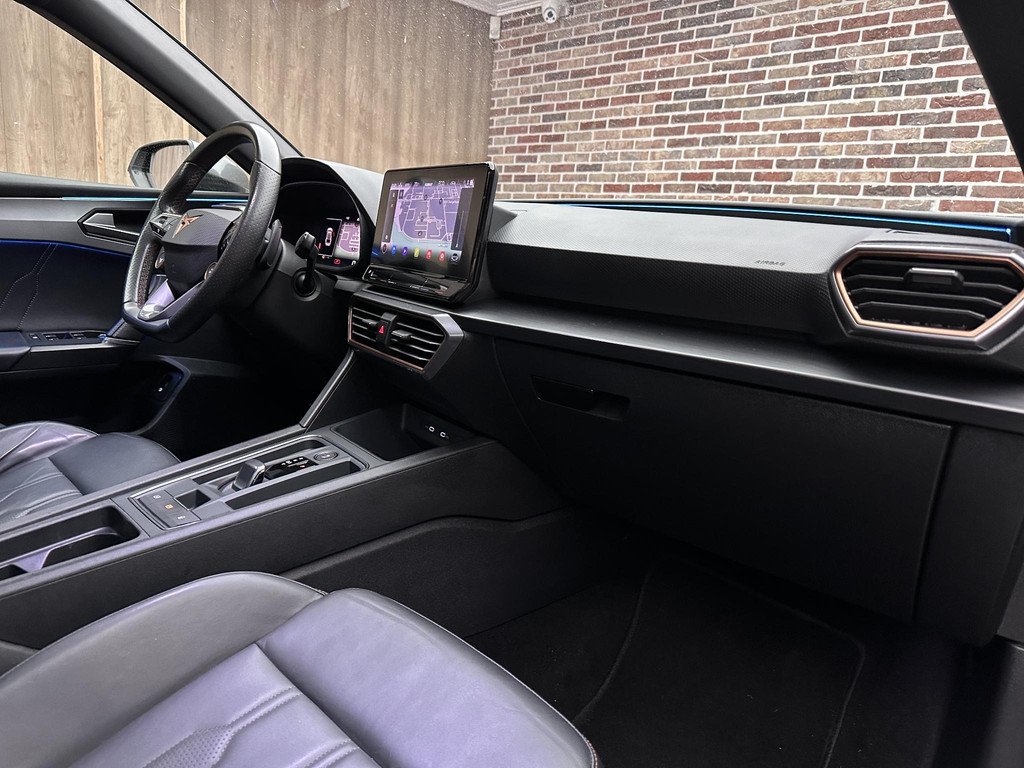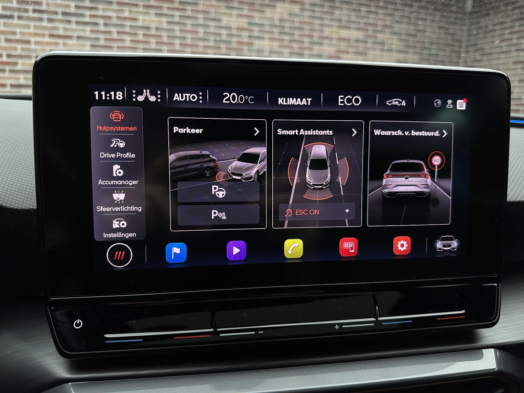 In deze auto zijn verschillende technologieën aanwezig die voor u het verkeer en de omgeving in de gaten houden en die desnoods ook kunnen remmen of bijsturen. Verkeersbord-detectie herkent verkeersborden en toont deze op het instrumentarium van de auto. Mooi binnen de lijnen van de rijstrook blijven? Het Lane-keeping systeem helpt altijd een handje. Deze CUPRA Leon blijft altijd alert. Zo wordt gebruik gemaakt van forward collision warning. Bij het mogelijke risico op een aanrijding met een voertuig voor u, slaat het systeem alarm. Bovenop deze veiligheidsfeatures heeft deze CUPRA bovendien dodehoekdetectie, hill hold functie, vermoeidheidsherkenning, autonoom remsysteem en bandenspanningcontrolesysteem.