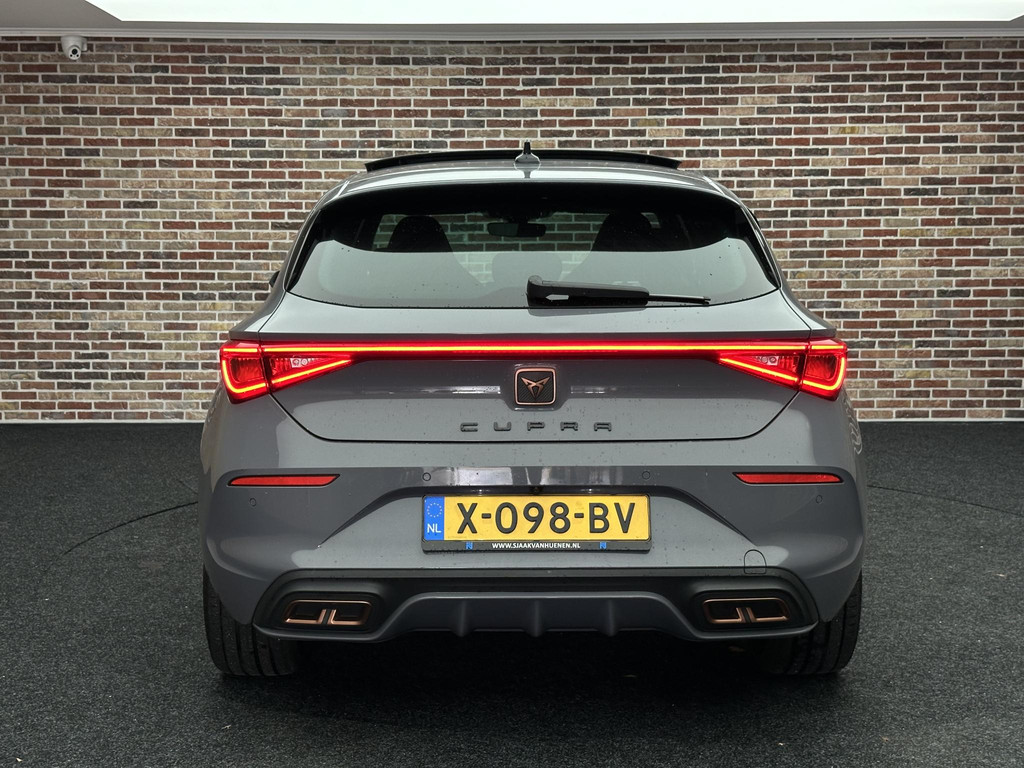 Het gecombineerde vermogen van een elektromotor plus een verbrandingsmotor geeft deze hybride CUPRA zijn geweldige rijkwaliteiten. Dit is een Leon van het bouwjaar 2021, hij heeft 103500 kilometer op de teller staan. Noodzaak is het misschien niet, maar wát een luxegevoel, dat elektrisch bediende glazen panorama dak en dat lederen interieur. Er is stoelverwarming aanwezig in deze auto. Nooit meer koude handen of koude vingers in de auto. Stuurverwarming zorgt ervoor dat het stuur behaaglijk warm aanvoelt. Bij de rijke uitrusting horen ook 19 inch lichtmetalen velgen, LED koplampen, adaptief dempingsysteem, extra getint glas, in delen neerklapbare achterbank en LED-achterlichten.