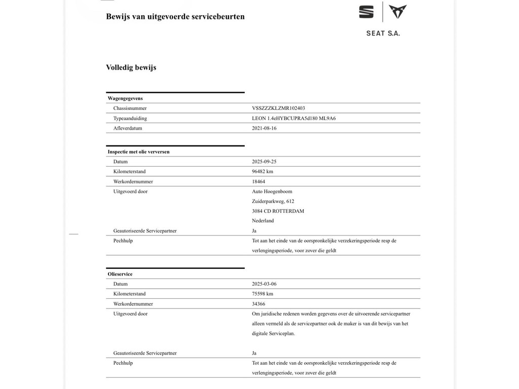 - Onderhoudsboekje (digitaal)