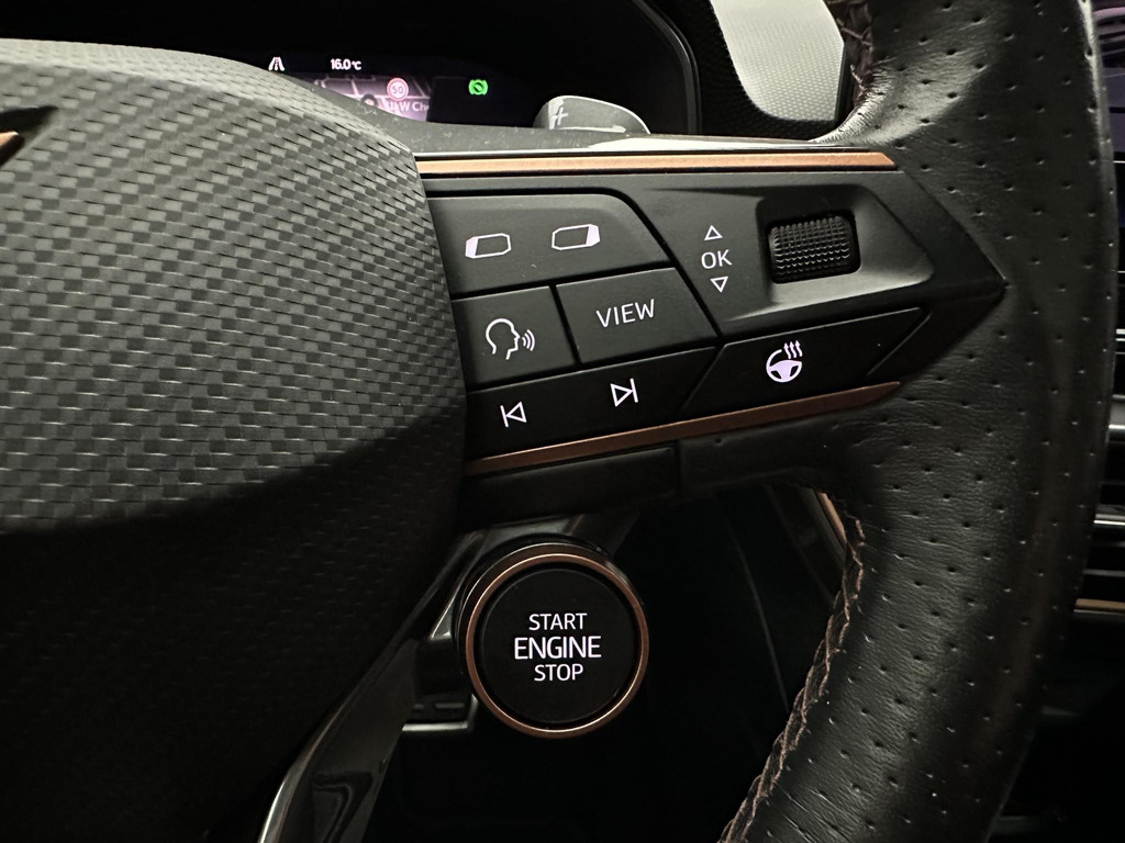 In deze auto zijn verschillende technologieën aanwezig die voor u het verkeer en de omgeving in de gaten houden en die desnoods ook kunnen remmen of bijsturen. Verkeersbord-detectie herkent verkeersborden en toont deze op het instrumentarium van de auto. Mooi binnen de lijnen van de rijstrook blijven? Het Lane-keeping systeem helpt altijd een handje. Deze CUPRA Leon blijft altijd alert. Zo wordt gebruik gemaakt van forward collision warning. Bij het mogelijke risico op een aanrijding met een voertuig voor u, slaat het systeem alarm. Bovenop deze veiligheidsfeatures heeft deze CUPRA bovendien dodehoekdetectie, hill hold functie, vermoeidheidsherkenning, autonoom remsysteem en bandenspanningcontrolesysteem.
