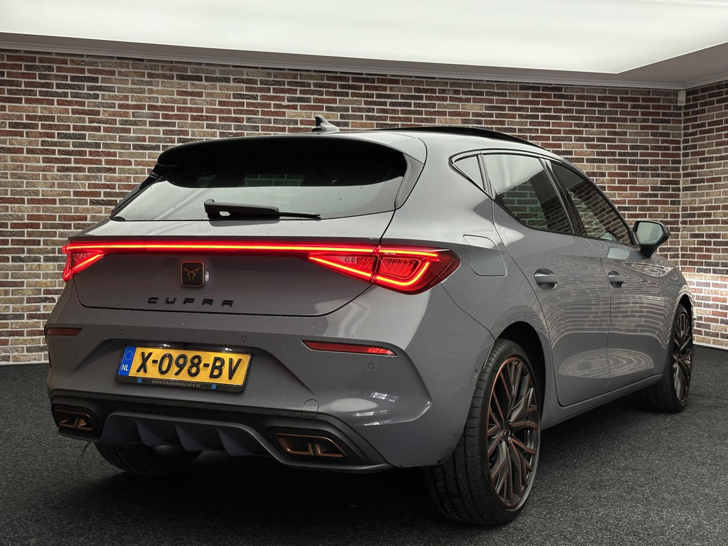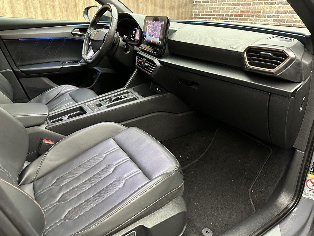 Het gecombineerde vermogen van een elektromotor plus een verbrandingsmotor geeft deze hybride CUPRA zijn geweldige rijkwaliteiten. Dit is een Leon van het bouwjaar 2021, hij heeft 103500 kilometer op de teller staan. Noodzaak is het misschien niet, maar wát een luxegevoel, dat elektrisch bediende glazen panorama dak en dat lederen interieur. Er is stoelverwarming aanwezig in deze auto. Nooit meer koude handen of koude vingers in de auto. Stuurverwarming zorgt ervoor dat het stuur behaaglijk warm aanvoelt. Bij de rijke uitrusting horen ook 19 inch lichtmetalen velgen, LED koplampen, adaptief dempingsysteem, extra getint glas, in delen neerklapbare achterbank en LED-achterlichten.