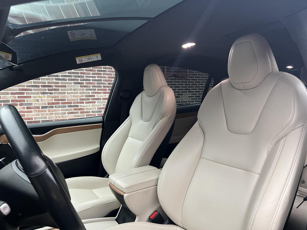 Efficiënte techniek en ongekende dynamiek. Het plezier van elektrisch rijden gaat in deze Tesla Model X samen met een spaarzaam stroomverbruik. Eindelijk elektrisch rijden? Deze auto is voorzien van een elektromotor. Dus stil, schoon én snel! Deze Tesla Model X is voorzien van luchtvering, en dat is te merken aan de rimpelloze wegligging. De lederen bekleding geeft het interieur een hoogwaardige uitstraling. Neem plaats op de comfortabele stoelen. Dankzij de elektrische bediening en het geheugen is het eenvoudig om hierin de beste zitpositie te vinden. Rijcomfort wordt naar een hoger niveau getild in deze auto, met inbegrip van stoelverwarming, een verwarmbare achterbank en een verwarmbaar stuur. Een handige voorziening op deze auto is de elektrische achterklep die u op afstand kunt openen. Veel en veilig zicht krijgt u door de panoramische voorruit, maar ook een heerlijk ruimtelijk gevoel. Verder is de Tesla uitgerust met: 22 inch lichtmetalen velgen, LED koplampen, LED-achterlichten, verwarmde ruitensproeiers en snelheidsafhankelijke stuurbekrachtiging.