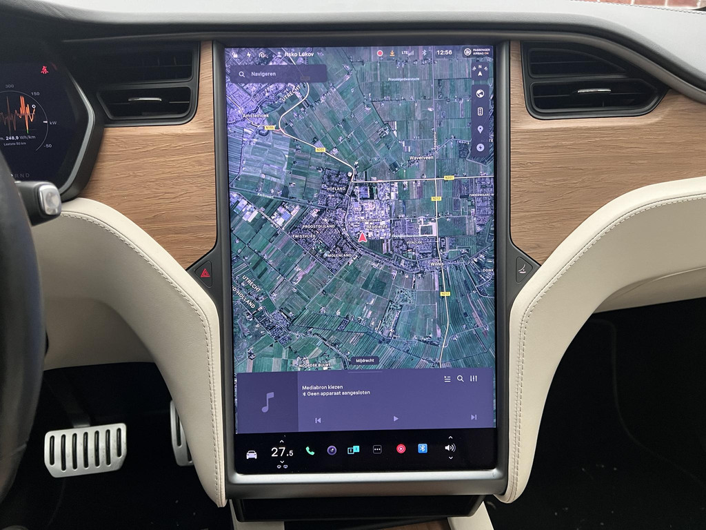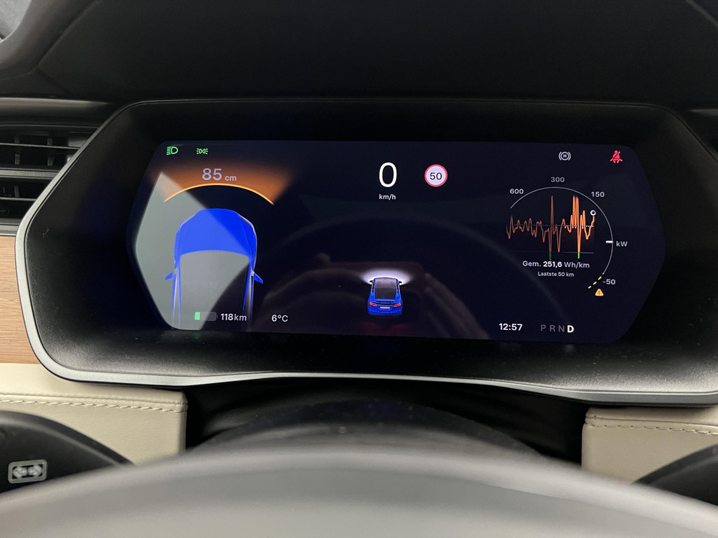Zoals u mag verwachten van deze Tesla Model X is hij uitgerust met een reeks aan actieve veiligheidssystemen. Verkeersbord-detectie herkent verkeersborden en toont deze op het instrumentarium van de auto. Voorzien van het Lane-keeping systeem. Ofwel: blijf automatisch in je baan. Verder is deze auto uitgerust met dodehoekdetectie en bandenspanningcontrolesysteem.