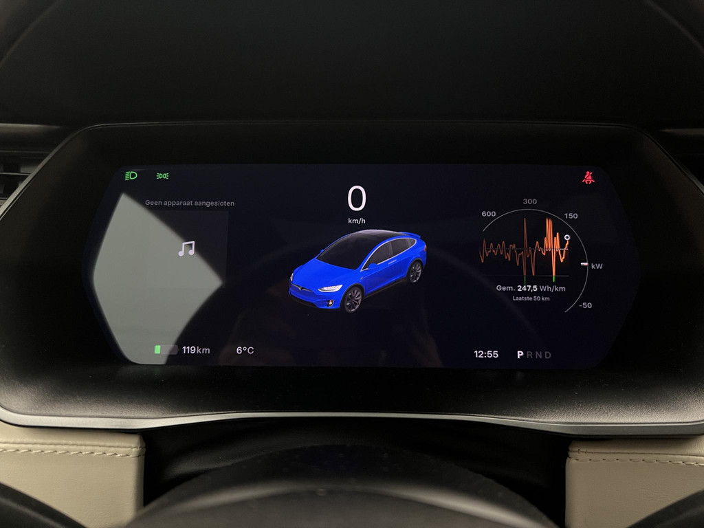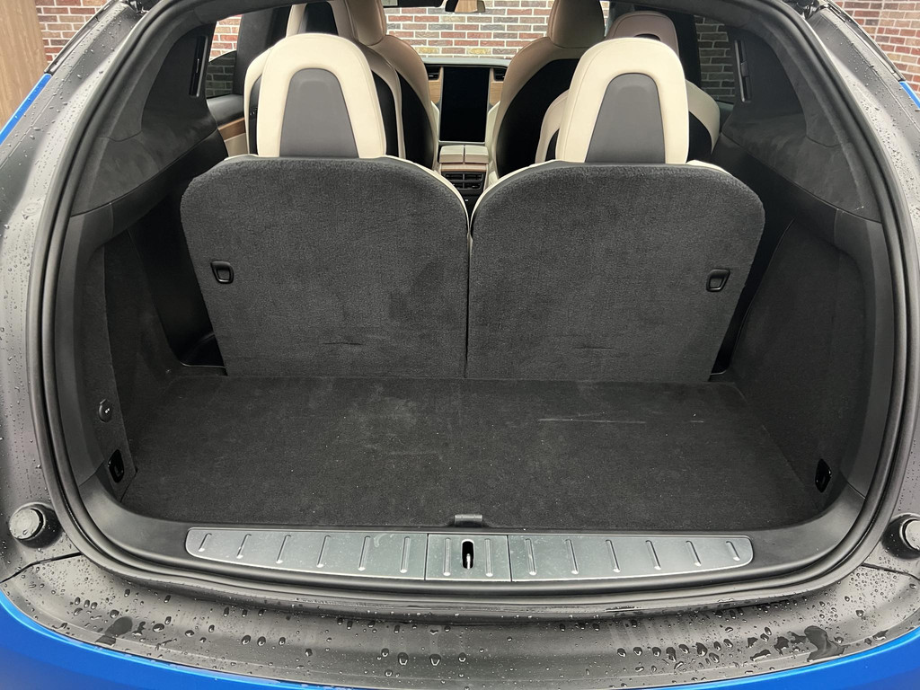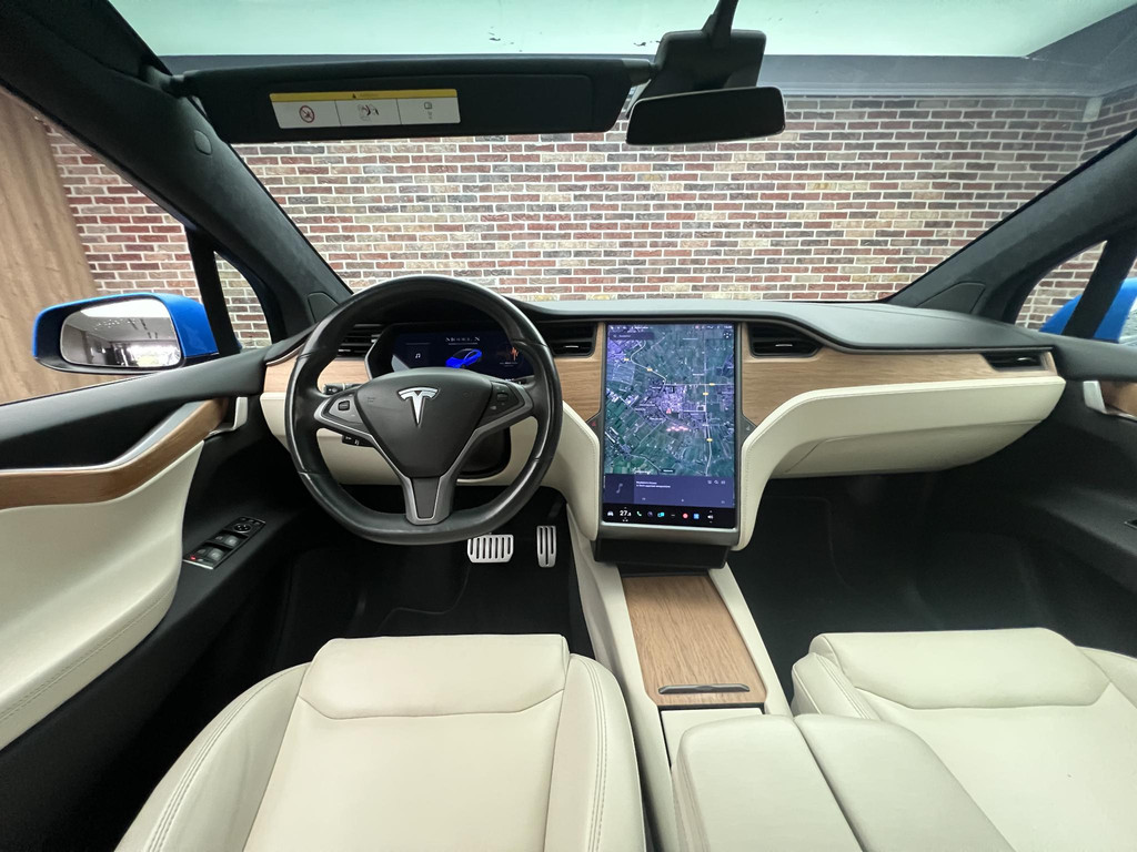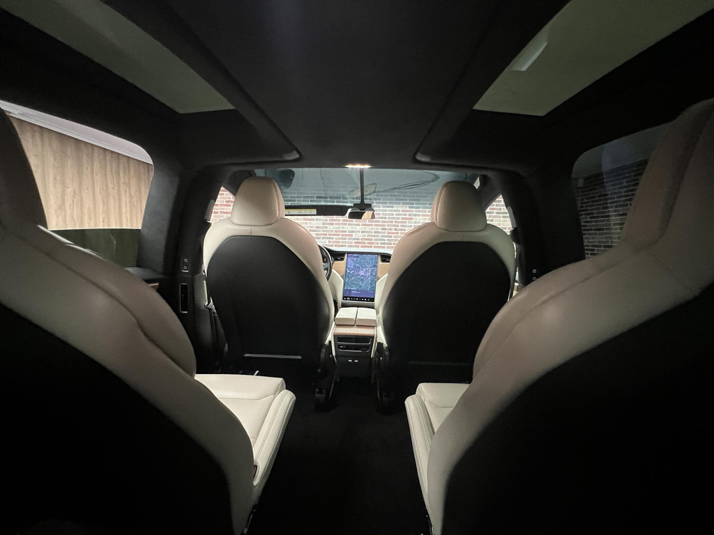 Efficiënte techniek en ongekende dynamiek. Het plezier van elektrisch rijden gaat in deze Tesla Model X samen met een spaarzaam stroomverbruik. Eindelijk elektrisch rijden? Deze auto is voorzien van een elektromotor. Dus stil, schoon én snel! Deze Tesla Model X is voorzien van luchtvering, en dat is te merken aan de rimpelloze wegligging. De lederen bekleding geeft het interieur een hoogwaardige uitstraling. Neem plaats op de comfortabele stoelen. Dankzij de elektrische bediening en het geheugen is het eenvoudig om hierin de beste zitpositie te vinden. Rijcomfort wordt naar een hoger niveau getild in deze auto, met inbegrip van stoelverwarming, een verwarmbare achterbank en een verwarmbaar stuur. Een handige voorziening op deze auto is de elektrische achterklep die u op afstand kunt openen. Veel en veilig zicht krijgt u door de panoramische voorruit, maar ook een heerlijk ruimtelijk gevoel. Verder is de Tesla uitgerust met: 22 inch lichtmetalen velgen, LED koplampen, LED-achterlichten, verwarmde ruitensproeiers en snelheidsafhankelijke stuurbekrachtiging.