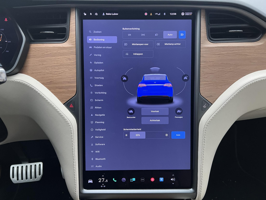 Zoals u mag verwachten van deze Tesla Model X is hij uitgerust met een reeks aan actieve veiligheidssystemen. Verkeersbord-detectie herkent verkeersborden en toont deze op het instrumentarium van de auto. Voorzien van het Lane-keeping systeem. Ofwel: blijf automatisch in je baan. Verder is deze auto uitgerust met dodehoekdetectie en bandenspanningcontrolesysteem.