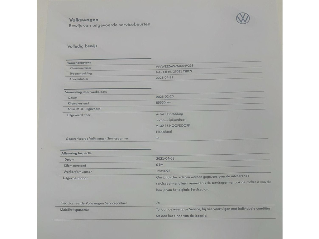 - Volledige onderhoudshistorie beschikbaar
