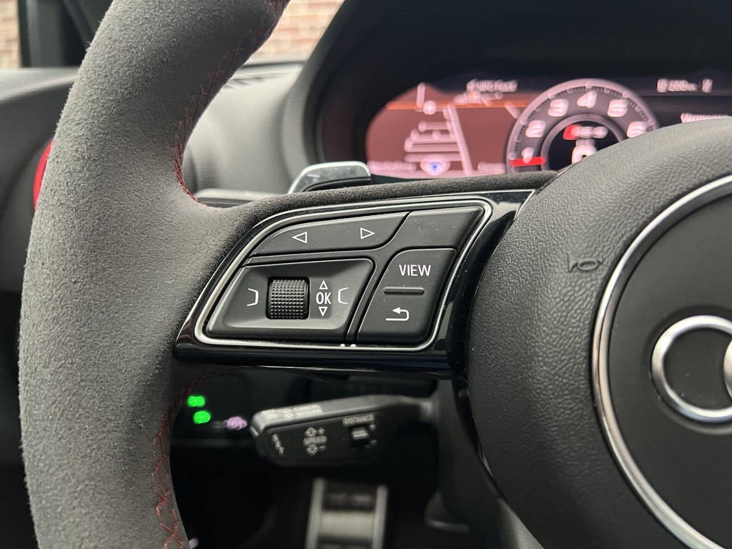 De indeling van het digitale dashboard is zo ingericht dat u met één blik precies weet wat u weten wilt. Zodra u naar de 'R' schakelt, gaat de achteruitrijcamera in werking en heeft u een perfect zicht op alles wat zich achter de auto afspeelt. Adaptive cruise control is veilig en comfortabel. De snelheidsregelaar houdt automatisch afstand tot het voertuig dat voor u rijdt. De file assistent verzacht het fileleed door automatisch veilig afstand te houden tot de voorligger en zo nodig zelfs te stoppen als de rij tot stilstand komt. De sensatie van superieur geluid wordt geleverd door het high performance audiosysteem. De uitrusting van deze Audi is met navigatiesysteem met harde schijf, WIFI-hotspot, achteropkomend verkeer waarschuwing, automatische airconditioning, DAB ontvangst en regensensor behoorlijk compleet.