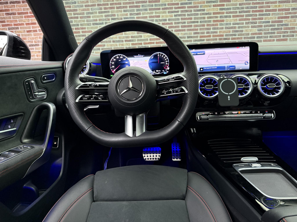Prestaties op hoog niveau, een onderscheidende, stijlvolle carrosserie en een ruim en comfortabel interieur, het zijn de eigenschappen waarmee auto's als deze Mercedes-Benz CLA-klasse hun reputatie hebben gevestigd. Een beetje meer aandacht en een stoere uitstraling? Daar zorgt de AMG-styling voor. Deze Mercedes-Benz CLA-klasse heeft een hybride motor, dus een combi van brandstof en elektrisch. Een slim en milieuvriendelijk systeem dat ook nog eens lekker kostenbesparend is. Boven uw hoofd schuiven de wolken zichtbaar voorbij door het elektrisch bediende glazen panorama dak. En kijk eens aan de achterzijde wat gemakkelijk: een eveneens elektrisch bedienbare achterklep! Neem plaats op de comfortabele stoelen. Dankzij de elektrische bediening en het geheugen is het eenvoudig om hierin de beste zitpositie te vinden. Koude handen? Da's voorbij met het verwarmd stuurwiel. Pak aan! De matrix LED-verlichting in de koplampen bestaat uit een raster van lichtpunten met maximale opbrengst. Bij tegenliggers past het systeem precies die punten aan die hinderlijk kunnen zijn. U behoudt maximaal zicht! Tot de uitrusting van deze Mercedes-Benz behoren ook 18 inch lichtmetalen velgen, AMG-styling, in delen neerklapbare achterbank, LED-achterlichten, verstelbare lendensteunen en verwarmde ruitensproeiers.