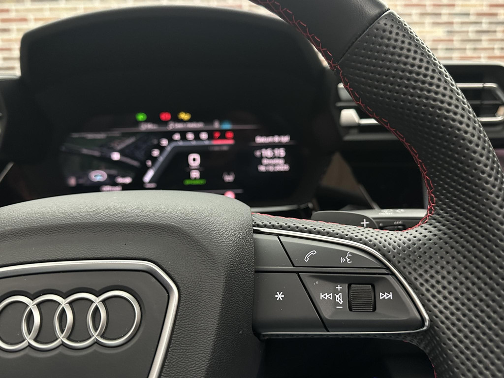 De achteruitrijcamera levert eersteklas parkeerservice. U weet precies hoeveel ruimte u nog heeft, in beeld en geluid. Adaptive cruise control houdt de ingestelde snelheid vast en houdt automatisch afstand tot uw voorligger. De radio harder of zachter zetten of iemand uit uw contactenlijst bellen. Dankzij de spraakbediening doet u dit allemaal met uw stem. Deze Audi A3 Limousine is 'connected'. Belangrijke functies worden permanent gemeten en zijn uit te lezen via een speciale app, ook op afstand. Het high performance audiosysteem produceert krachtige bassen en heldere hoge tonen. En deze auto heeft ook full map navigatiesysteem, electronic climate control, sportstuur met schakelpaddels, draadloos opladen, DAB ontvangst en regensensor als standaard uitrusting.