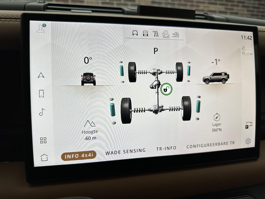 Deze Land Rover is voorzien van verschillende intelligente veiligheidsvoorzieningen. Ze kijken tijdens het rijden als het ware met u mee, ze signaleren potentieel gevaarlijke situaties en in een aantal gevallen kunnen ze ook ingrijpen. Een belangrijke bijdrage aan de veiligheid onderweg levert de verkeersbord-detectie. Deze Land Rover Defender is ook behulpzaam als het gaat om een rechte koers. Het Lane-keeping systeem signaleert en corrigeert als u onbedoeld de rijstrooklijnen dreigt te overschrijden. Het risico van een kop-staartbotsing wordt aanzienlijk verminderd door de forward collision warning. Dankzij veiligheidsvoorzieningen als dodehoekdetectie, hill hold functie, brake assist, vermoeidheidsherkenning en bandenspanningcontrolesysteem, bent u steeds veilig onderweg.
