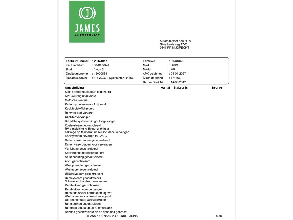 - Onderhoudsboekje aanwezig? ja