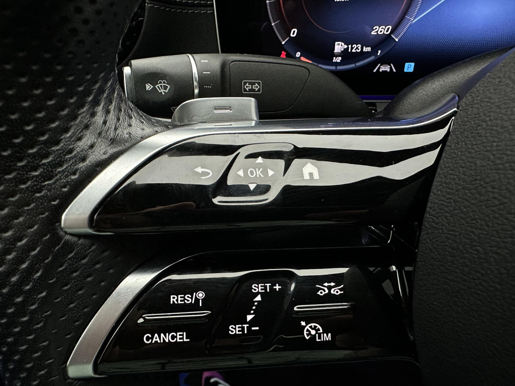 Snelheid, brandstofinfo, noem maar op. Het digitale dashboard houdt u permanent op de hoogte. Goed en overzichtelijk. Met de 360 graden camera kunt u elk detail rond de auto zien, waardoor mogelijke schade door verkeerd inschatten van afstanden vermeden wordt. Met adaptive cruise control houdt deze auto automatisch afstand tot uw voorligger. In de file rijden vreet concentratie. Daarom komt de file assistent te hulp om veilig afstand te houden en automatisch te stoppen als uw voorligger stilstaat. Zoals u van zo'n jonge auto mag verwachten, zijn hier ook de geavanceerde remote services aanwezig. Simpelweg met een app op uw smartphone controleert u op afstand de status van de auto en bedient u diverse functies. Met dashboard met spraakbediening, premium audiosysteem, full map navigatiesysteem, kruisend verkeer detectie, electronic climate control en sportstuur met schakelpaddels is deze Mercedes-Benz helemaal compleet.
