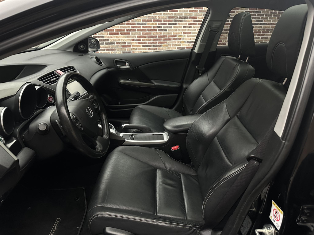 Omdat u nou eenmaal geen ogen in uw achterhoofd heeft, is het altijd lastig om achteruit te rijden zonder brokken te maken. De achteruitrijcamera lost dat probleem op. Wat wilt u onderweg horen? Er is volop keus, dankzij bluetooth. Het navigatiesysteem met harde schijf is met het audiosysteem gecombineerd. De automatische airconditioning zorgt onder alle omstandigheden voor een prettige temperatuur. Het drukke verkeer eist onderweg al uw aandacht op. Daarom is het goed dat deze Honda is voorzien van diverse systemen die u assisteren tijdens de rit. Een automatisch inschakelbare verlichting neemt het waar als het donker wordt of gaat schemeren, en schakelt dan automatisch de verlichting in. Op dezelfde manier "ziet" de regensensor de eerste spatjes regen en schakelt dan de ruitenwissers in, en als het harder gaat regenen zet hij de ruitenwissers ook in een snellere stand. Zuinig zoeven, dat kan deze auto dankzij de aanwezige cruise control. Deze auto is voorzien van keyless entry, automatisch dimmende binnenspiegel, lederen stuur, centrale deurvergrendeling met afstandsbediening en boordcomputer.