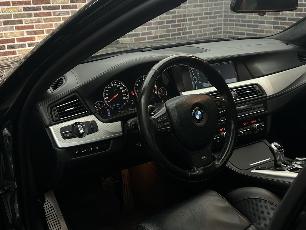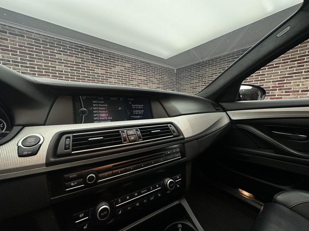 Hij is stijlvol en comfortabel, deze BMW 5-serie, en hij is ontworpen om u veilig en comfortabel te laten rijden onder alle omstandigheden. De aandrijving van deze BMW wordt verzorgd door een achtcilinder benzinemotor en een automatische transmissie. Ook een fijne dosis klasse is bijgeleverd, met het lederen interieur. Zit u goed? De stoelen zijn eenvoudig instelbaar dankzij de elektrische bediening met geheugen. Comfort, licht en het complete gevoel van ruimte wordt verzorgd door het elektrisch bediende panoramadak. Als u de stuurverwarming inschakelt, geniet u van weldadige warmte voor uw handen en vingers. Dankzij de xenonverlichting profiteert u in het donker van een krachtige en heldere lichtbundel. De uitmonstering van deze auto wordt gecompleteerd door onder meer elektrische zonnerollo voor de achterruit, 20 inch lichtmetalen velgen, adaptief dempingsysteem, in delen neerklapbare achterbank en verstelbare lendensteunen.