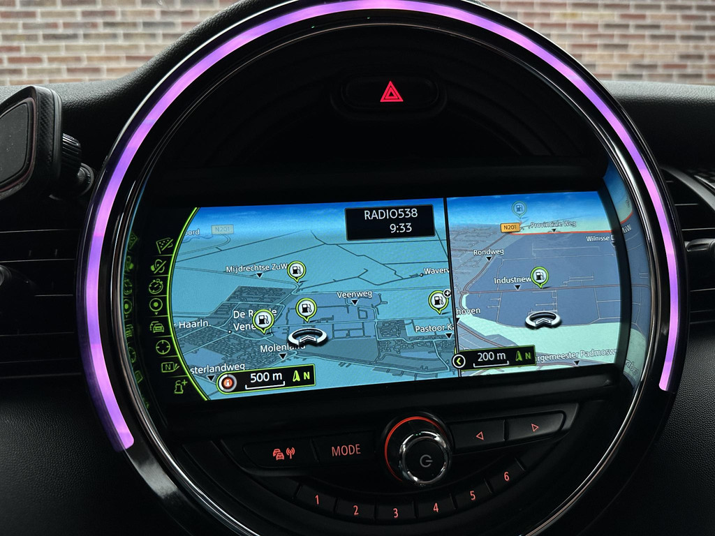 Wat een gemak, die achteruitrijcamera. Alles in beeld zonder capriolen. U kunt uw handen aan het stuur houden en uw ogen op de weg. Want het audio-installatiesysteem, met DAB-ontvangst, en het full map navigatiesysteem bedient u vanaf het stuurwiel. Automatische airconditioning regelt volautomatisch de temperatuur. U kiest de gewenste temperatuur en het systeem doet de rest. Het drukke verkeer eist onderweg al uw aandacht op. Daarom is het goed dat deze Mini is voorzien van diverse systemen die u assisteren tijdens de rit. Een automatisch inschakelbare verlichting neemt het waar als het donker wordt of gaat schemeren, en schakelt dan automatisch de verlichting in. Op dezelfde manier "ziet" de regensensor de eerste spatjes regen en schakelt dan de ruitenwissers in, en als het harder gaat regenen zet hij de ruitenwissers ook in een snellere stand. Cruise control houdt automatisch de ingestelde snelheid vast. Het is een ideaal hulpmiddel om lange ritten comfortabeler te maken. Met sportstuurwiel, keyless entry en boordcomputer is deze auto helemaal compleet.