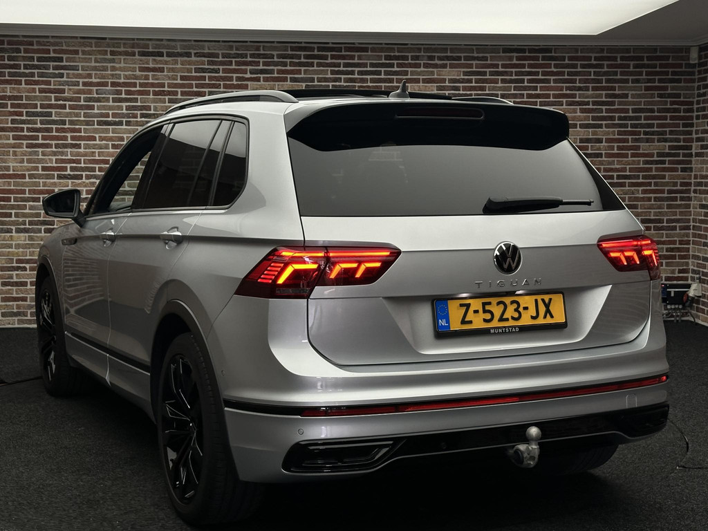 Het is heel simpel: er zijn talloze automerken op de markt, maar Volkswagen wordt het meest verkocht. En dat komt omdat een Volkswagen uitblinkt in vooruitstrevende techniek, uitstekende rijkwaliteiten en duurzaamheid. Die eigenschappen zijn ook van toepassing op de Tiguan die u hier ziet. Het oog wil ook wat. Daarom is deze Volkswagen Tiguan uitgevoerd in R-Line styling. Niet voor niets is de vraag naar gebruikte Volkswagens zo groot, want de kwaliteit staat ook na een aantal jaren nog buiten kijf, zoals aan deze Tiguan duidelijk te zien is. Ondanks zijn zuinigheid, levert de benzinemotor van deze Volkswagen uitstekende prestaties. De ruime lichtinval door het elektrisch bediende glazen panorama dak zorgt voor een heerlijk ruim gevoel. Met één klik te openen voor frisse lucht en een mild windje in de auto. Dat is gemak en plezier! Overigens is het happy-klik gevoel ook aanwezig bij de elektrisch bedienbare achterklep. In de winter wordt het echt genieten met de stoelverwarming. Stramme vingers krijgen 's winters een VIP-behandeling van het verwarmd stuurwiel. Perfect zicht bij nacht en slecht weer? Dat leveren de koplampen met matrix LED-verlichting. Ook is de auto voorzien van: adaptief dempingsysteem, dakspoiler, extra getint glas, in delen neerklapbare achterbank, LED-achterlichten en verstelbare lendensteunen.