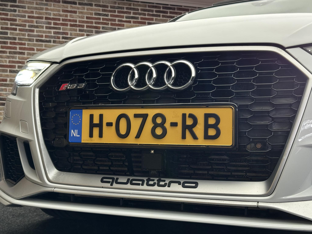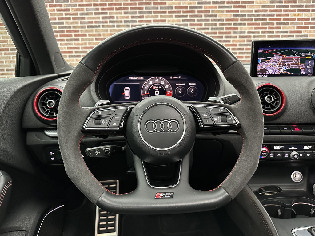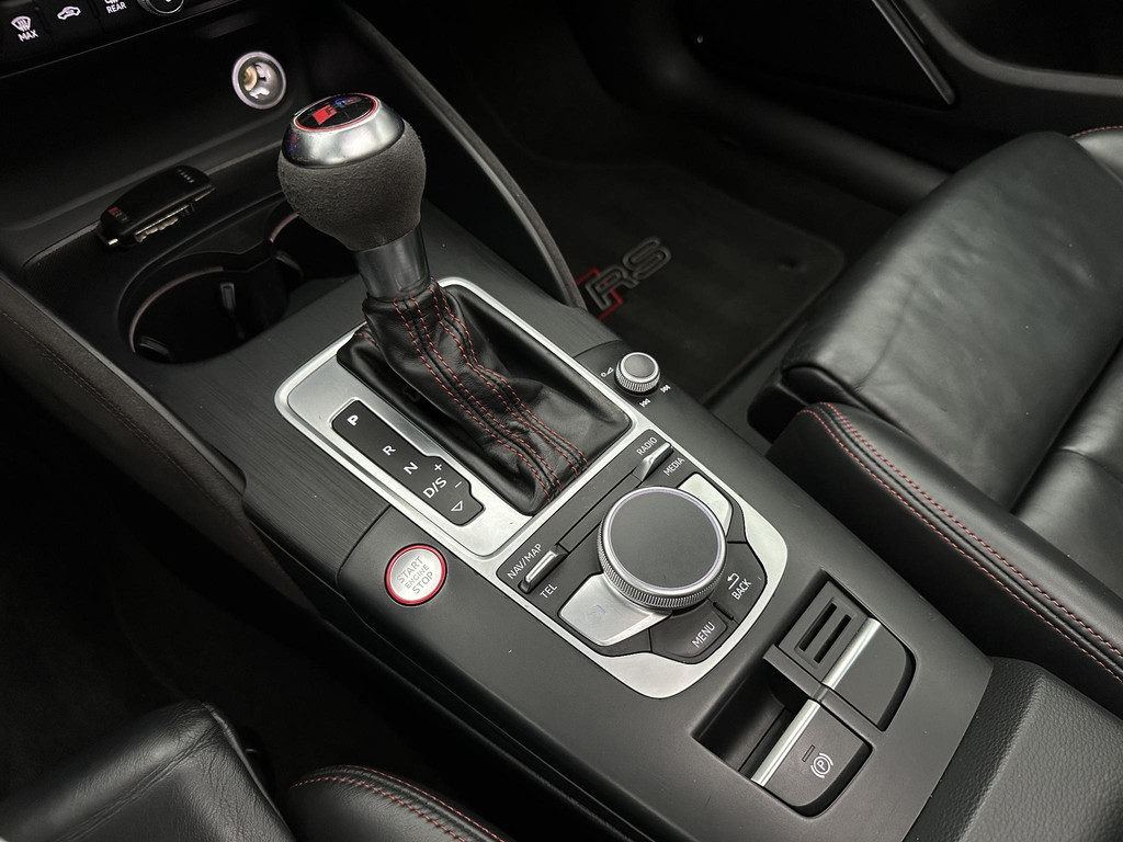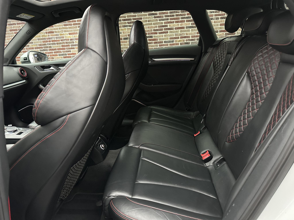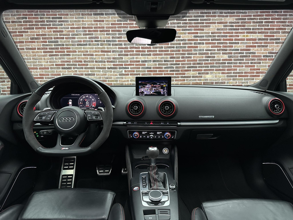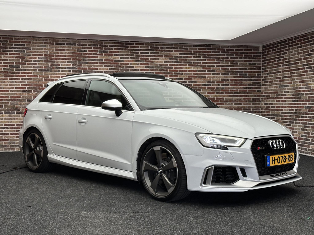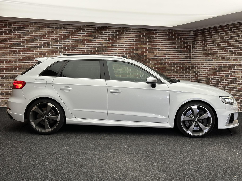 In het moderne verkeer hebt u achter het stuur van de Audi RS3 Sportback altijd de controle. Deze auto komt uit 2018. De vijfcilinder benzinemotor in combinatie met de automatische transmissie maken het rijden met deze Audi tot een waar feest. Iedereen kan het beamen: een lederen interieur is levend en luxe. Om van comfort nog maar te zwijgen. En dat komt allemaal nog beter tot z'n recht dankzij het elektrisch bediende glazen panorama dak. Tijdens koude winterdagen verjaagt uw stoelverwarming de kou en maakt het rijden heerlijk comfortabel. Dankzij de matrix LED-verlichting geven de koplampen ook in het donker daglicht. Bij de uitrusting van deze auto horen onder meer 19 inch lichtmetalen velgen, sportonderstel, adaptief dempingsysteem, warmtewerend glas, in delen neerklapbare achterbank en verstelbare lendensteunen.