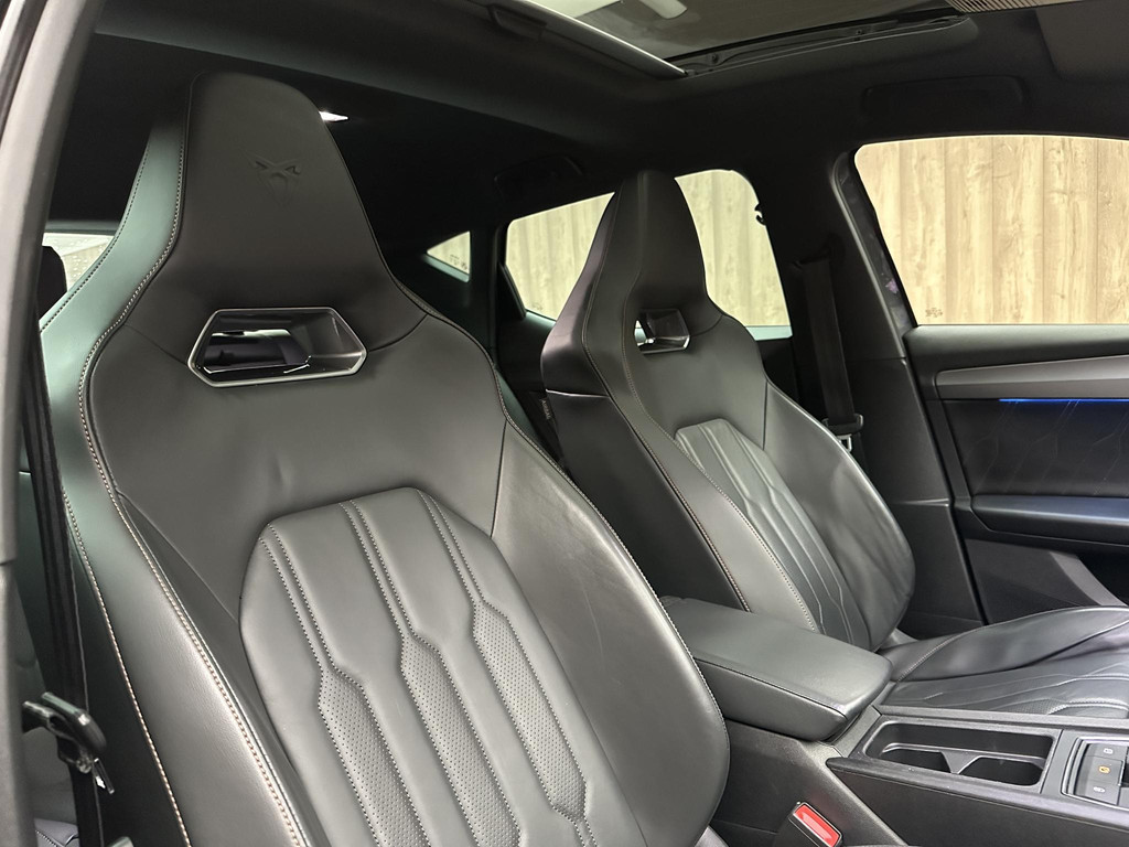 Het gecombineerde vermogen van een elektromotor plus een verbrandingsmotor geeft deze hybride CUPRA zijn geweldige rijkwaliteiten. Dit is een Leon van het bouwjaar 2021, hij heeft 103500 kilometer op de teller staan. Noodzaak is het misschien niet, maar wát een luxegevoel, dat elektrisch bediende glazen panorama dak en dat lederen interieur. Er is stoelverwarming aanwezig in deze auto. Nooit meer koude handen of koude vingers in de auto. Stuurverwarming zorgt ervoor dat het stuur behaaglijk warm aanvoelt. Bij de rijke uitrusting horen ook 19 inch lichtmetalen velgen, LED koplampen, adaptief dempingsysteem, extra getint glas, in delen neerklapbare achterbank en LED-achterlichten.
