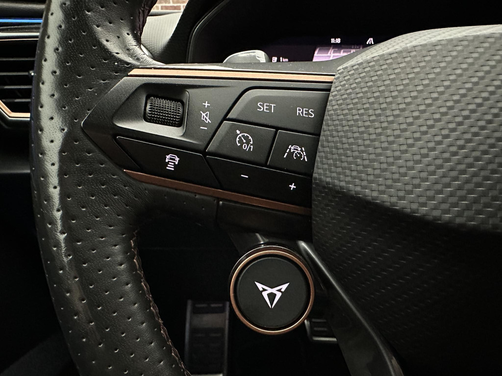 In deze auto zijn verschillende technologieën aanwezig die voor u het verkeer en de omgeving in de gaten houden en die desnoods ook kunnen remmen of bijsturen. Verkeersbord-detectie herkent verkeersborden en toont deze op het instrumentarium van de auto. Mooi binnen de lijnen van de rijstrook blijven? Het Lane-keeping systeem helpt altijd een handje. Deze CUPRA Leon blijft altijd alert. Zo wordt gebruik gemaakt van forward collision warning. Bij het mogelijke risico op een aanrijding met een voertuig voor u, slaat het systeem alarm. Bovenop deze veiligheidsfeatures heeft deze CUPRA bovendien dodehoekdetectie, hill hold functie, vermoeidheidsherkenning, autonoom remsysteem en bandenspanningcontrolesysteem.