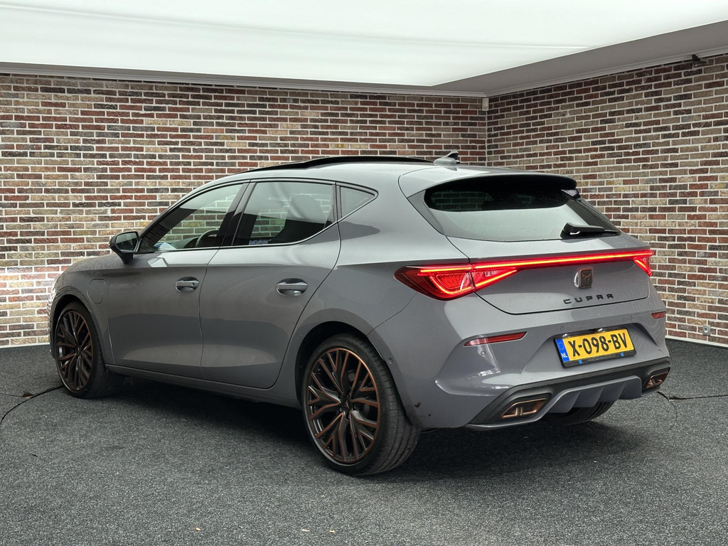 Het gecombineerde vermogen van een elektromotor plus een verbrandingsmotor geeft deze hybride CUPRA zijn geweldige rijkwaliteiten. Dit is een Leon van het bouwjaar 2021, hij heeft 103500 kilometer op de teller staan. Noodzaak is het misschien niet, maar wát een luxegevoel, dat elektrisch bediende glazen panorama dak en dat lederen interieur. Er is stoelverwarming aanwezig in deze auto. Nooit meer koude handen of koude vingers in de auto. Stuurverwarming zorgt ervoor dat het stuur behaaglijk warm aanvoelt. Bij de rijke uitrusting horen ook 19 inch lichtmetalen velgen, LED koplampen, adaptief dempingsysteem, extra getint glas, in delen neerklapbare achterbank en LED-achterlichten.
