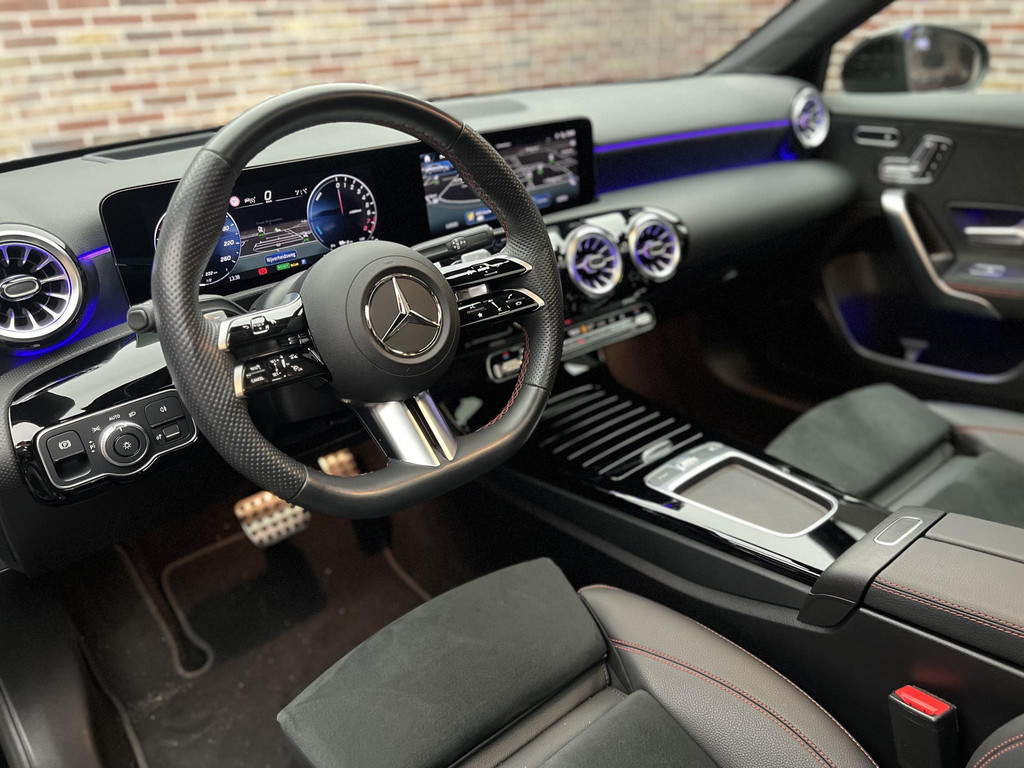 Ze zeggen dat Duitsers weinig humor hebben. Toch geeft deze Mercedes-Benz A-klasse u absoluut een brede lach op uw gezicht. Kan ook niet anders. Topkwaliteit, vooruitstrevende techniek, formidabele rijsprestaties worden hier gebundeld in één auto. Drie letters veranderen deze Mercedes-Benz in een uitzonderlijke Mercedes-Benz. De AMG-styling staat voor individualiteit en sportiviteit. Uitstekende prestaties op de weg dankzij de verbrandingsmotor én elektromotor. En héél vriendelijk voor het milieu en portemonnee! Dankzij het elektrisch bediende glazen panorama dak en het heerlijke lederen interieur is het soms bijna jammer dat u op uw bestemming moet uitstappen. Zit u goed? De stoelen zijn eenvoudig instelbaar dankzij de elektrische bediening met geheugen. Een heerlijk luxe optie van deze auto is het verwarmbare stuurwiel. Verblinding van tegenliggers is er niet meer bij, dankzij de koplampen met matrix LED-verlichting. En toch de kwaliteit van daglicht in het donker! Tot de voorzieningen van deze auto behoren 18 inch lichtmetalen velgen, AMG-styling, trailer assistent, donker getint glas achter, in delen neerklapbare achterbank en LED-achterlichten.