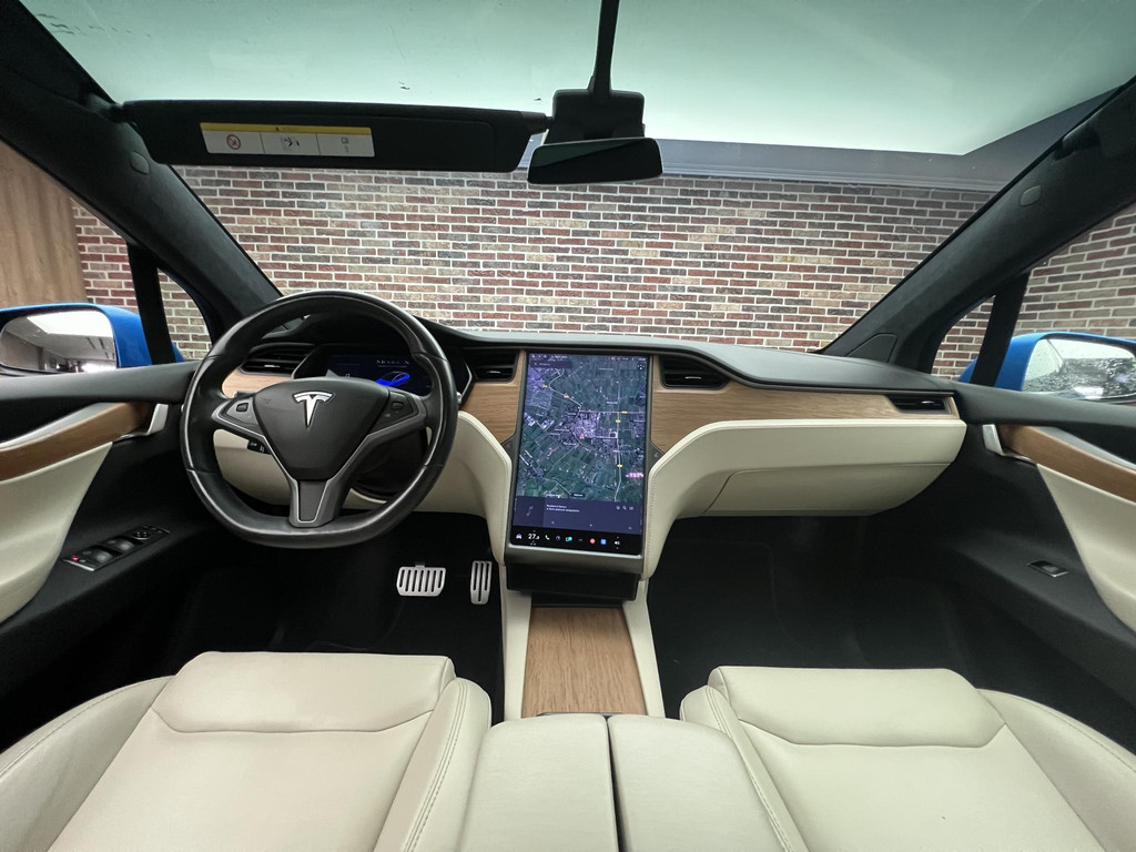 Efficiënte techniek en ongekende dynamiek. Het plezier van elektrisch rijden gaat in deze Tesla Model X samen met een spaarzaam stroomverbruik. Eindelijk elektrisch rijden? Deze auto is voorzien van een elektromotor. Dus stil, schoon én snel! Deze Tesla Model X is voorzien van luchtvering, en dat is te merken aan de rimpelloze wegligging. De lederen bekleding geeft het interieur een hoogwaardige uitstraling. Neem plaats op de comfortabele stoelen. Dankzij de elektrische bediening en het geheugen is het eenvoudig om hierin de beste zitpositie te vinden. Rijcomfort wordt naar een hoger niveau getild in deze auto, met inbegrip van stoelverwarming, een verwarmbare achterbank en een verwarmbaar stuur. Een handige voorziening op deze auto is de elektrische achterklep die u op afstand kunt openen. Veel en veilig zicht krijgt u door de panoramische voorruit, maar ook een heerlijk ruimtelijk gevoel. Verder is de Tesla uitgerust met: 22 inch lichtmetalen velgen, LED koplampen, LED-achterlichten, verwarmde ruitensproeiers en snelheidsafhankelijke stuurbekrachtiging.
