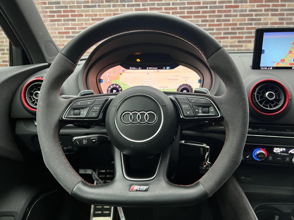 Wanneer u achter het stuur van deze Audi A3 Sportback kruipt, ervaart u het ongeëvenaarde Duitse vakmanschap die hem tot een klasse apart maakt. De vijfcilinder benzinemotor en de automatische transmissie maken het rijden met deze auto tot een waar feest. Houdt u van een stijlvolle uitvoering? Dan zal het lederen interieur u zeker bevallen. Op koude en donkere dagen zijn de verwarmbare voorstoelen een uitkomst. Het interieur lijkt groter en ruimtelijker dankzij het elektrisch bedienbare glazen panoramadak. De koplampen met matrix LED-verlichting zijn het hoogst haalbare op het gebied van autoverlichting. Ook 19 inch lichtmetalen velgen, sportonderstel, adaptief dempingsysteem, warmtewerend glas, in delen neerklapbare achterbank en verstelbare lendensteunen horen tot de voorzieningen op deze auto.