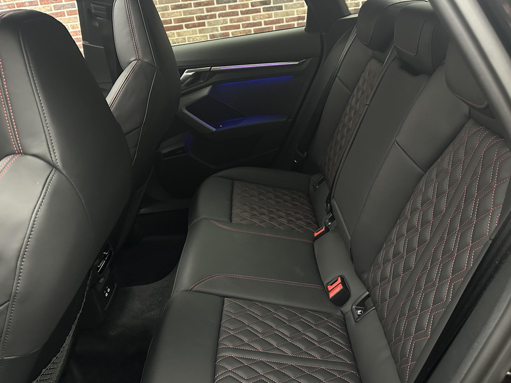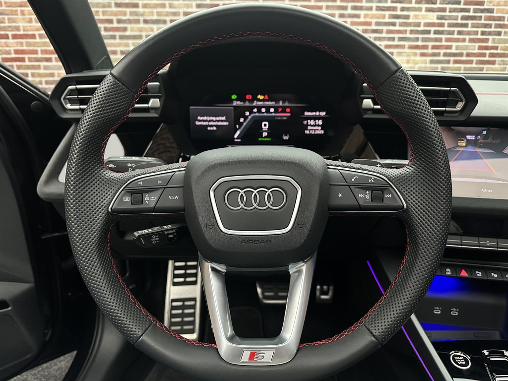 De achteruitrijcamera levert eersteklas parkeerservice. U weet precies hoeveel ruimte u nog heeft, in beeld en geluid. Adaptive cruise control houdt de ingestelde snelheid vast en houdt automatisch afstand tot uw voorligger. De radio harder of zachter zetten of iemand uit uw contactenlijst bellen. Dankzij de spraakbediening doet u dit allemaal met uw stem. Deze Audi A3 Limousine is 'connected'. Belangrijke functies worden permanent gemeten en zijn uit te lezen via een speciale app, ook op afstand. Het high performance audiosysteem produceert krachtige bassen en heldere hoge tonen. En deze auto heeft ook full map navigatiesysteem, electronic climate control, sportstuur met schakelpaddels, draadloos opladen, DAB ontvangst en regensensor als standaard uitrusting.