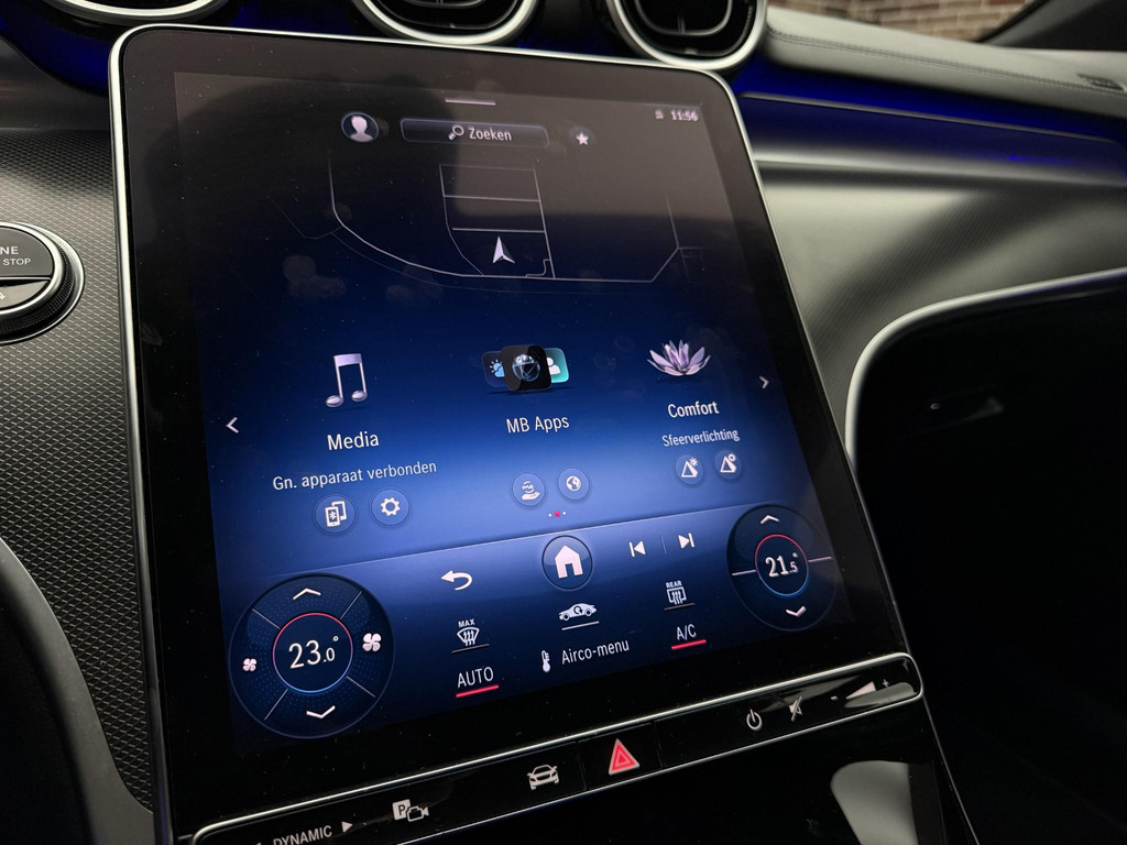 Pragmatisch en veilig als deze auto is, beschikt hij over diverse veiligheidssystemen. U rijdt ook veiliger omdat deze auto voor u de verkeersborden langs de weg kan lezen. De belangrijkste borden worden op uw instrumentarium geprojecteerd, zodat u ze niet kunt missen. Deze Mercedes-Benz C-klasse is ook behulpzaam als het gaat om een rechte koers. Het Lane-keeping systeem signaleert en corrigeert als u onbedoeld de rijstrooklijnen dreigt te overschrijden. Ook als uw aandacht even verslapt, blijft de forward collision warning bij de wekker. Dreigt er een botsing met een voor- of tegenligger, dan waarschuwt het systeem direct. De veiligheid van deze auto wordt verder verhoogd door dodehoekdetectie, brake assist en bandenspanningcontrolesysteem.