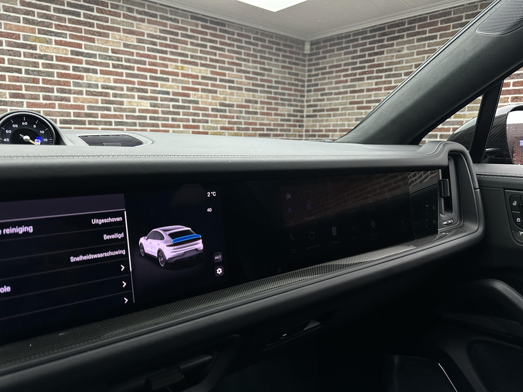 Zoals u mag verwachten van deze Porsche Cayenne Coupé is hij uitgerust met een reeks aan actieve veiligheidssystemen. Altijd uw blik op de weg: met de head-up display hoeft u geen moment uw ogen te verplaatsen. De info wordt geprojecteerd in het zichtveld voor u. De actuele snelheidslimiet, een inhaalverbod en andere verkeersborden; de verkeersborddetectie ondersteunt u tijdens elke rit. Deze Porsche Cayenne Coupé is ook behulpzaam als het gaat om een rechte koers. Het Lane-keeping systeem signaleert en corrigeert als u onbedoeld de rijstrooklijnen dreigt te overschrijden. Dankzij veiligheidsvoorzieningen als dodehoekdetectie, nachtzichtassistentie, brake assist en bandenspanningcontrolesysteem, bent u steeds veilig onderweg.
