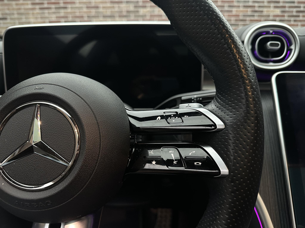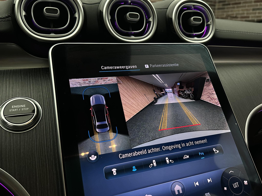 Voor het overzicht tijdens iedere rit is deze Mercedes-Benz C-klasse voorzien van een gemakkelijk afleesbaar digitaal dashboard. Of u nu achteruit rijdt, parkeert of een smalle straat inslaat, de 360 graden camera op deze auto, mogelijk gemaakt door vier camera's, biedt een perfect beeld van uw omgeving. Adaptive cruise control houdt de ingestelde snelheid vast en houdt afstand tot het voertuig voor u. In de file rijden vreet concentratie. Daarom komt de file assistent te hulp om veilig afstand te houden en automatisch te stoppen als uw voorligger stilstaat. Slimme spraakbesturing herkent gesproken opdrachten en voert ze uit. En deze auto heeft ook connected drive services, navigatiesysteem met harde schijf, automatische airconditioning, draadloos opladen, DAB ontvangst en regensensor als standaard uitrusting.